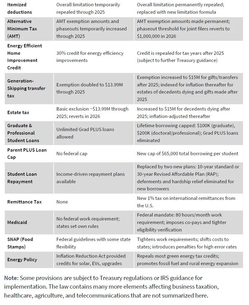 This legislation offers continuity in many areas while providing new opportunities for proactive tax planning. For individuals with significant income or estate planning needs, the preservation of TCJA rates and the expanded estate exemption could be especially impactful.